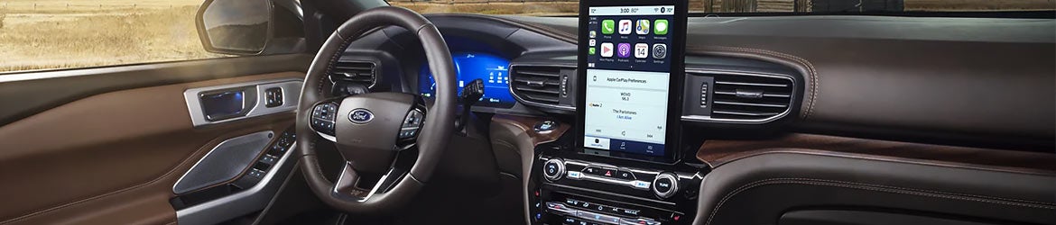 Inside the Explorer, you'll find a welcoming interior with plenty of space for up to seven passengers. Even the third row is easy to get to, thanks to a single button that will move the second-row seat forward for convenient access. The infotainment system is state-of-the-art as well and includes an 8-inch touchscreen that comes standard with Apple CarPlay and Android Auto alongside Wi-Fi hot spot capabilities.