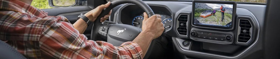 Inside the 2023 Bronco Sport, you'll find seating for five, with ample headroom and legroom for everyone. When the rear seats aren't in use, fold them flat to access 65.2 cubic feet of cargo space. Depending on which trim level you choose, you'll also enjoy premium cloth upholstery or luxurious leather seating surfaces. Upper trim levels add conveniently placed USB ports, a liftgate hatch featuring a bottle opener, and a cargo hold featuring tie-down hooks and loops. Every Bronco Sport supports Apple CarPlay and Android Auto via an 8-inch LCD capacitive touchscreen.
